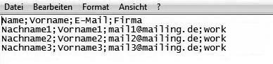 Maybe you have already collected email addresses to which you want to send a newsletter. No matter in which database these information are stored – you only need to save them in a CSV file (for example with Excel) and import them newsletteragentur. You can pack your CSV file as a zip to accelerate the uploading of large files. That's how it works:In the first line of the table, there should be field names – first name, surname, email address etc. An example: |
