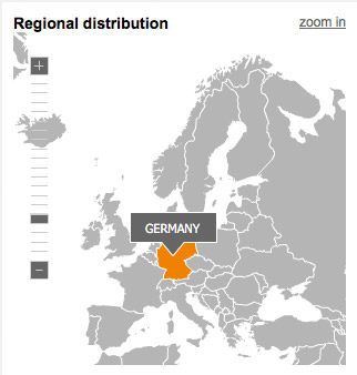 newsletteragentur generated based on the IP addresses of subscribers an overview of the 'local distribution'. If openings were counted in one country, this will be color coded. By clicking on the country a magnified view appears and cities become visible as points. The larger the dots, the more Openings were counted in this city. Move the cursor over an item, you see the Openings to the location. The data relate to the unique Openings (unique).