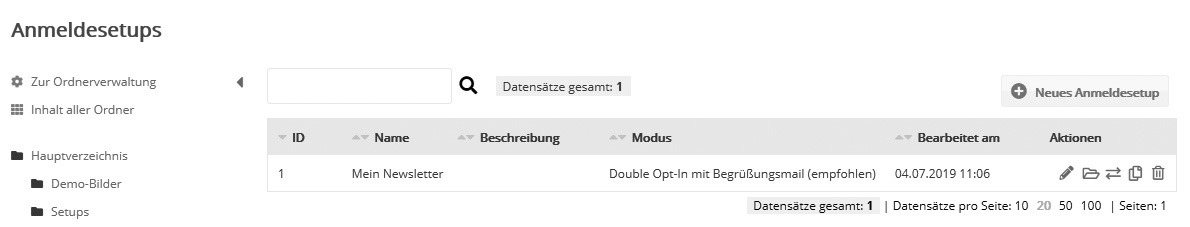 Sollten Sie ein Anmeldesetup in einen Unterordner verschoben haben, gelangen Sie an diese Stelle per 'Ordner öffnen'. Vorbereitungen für ein funktionierendes AnmeldesetupLegen Sie in newsletteragentur zunächst alle Zutaten an, die später im Anmeldesetup verwendet werden: